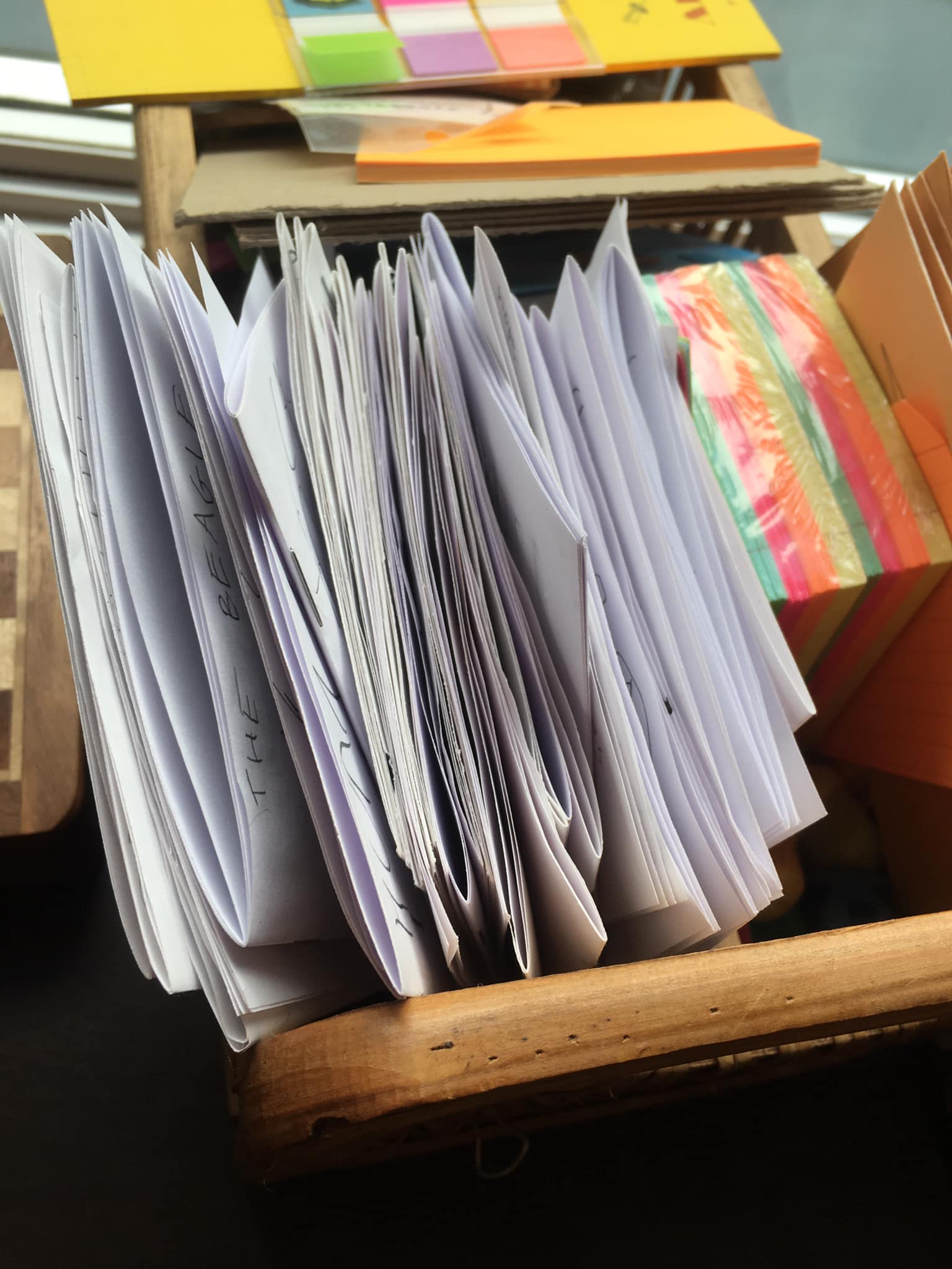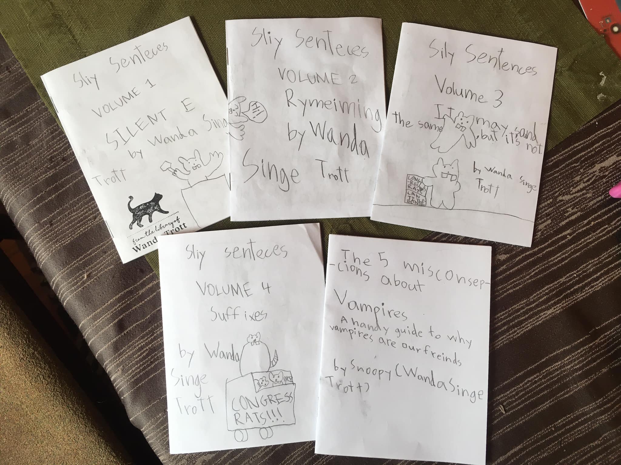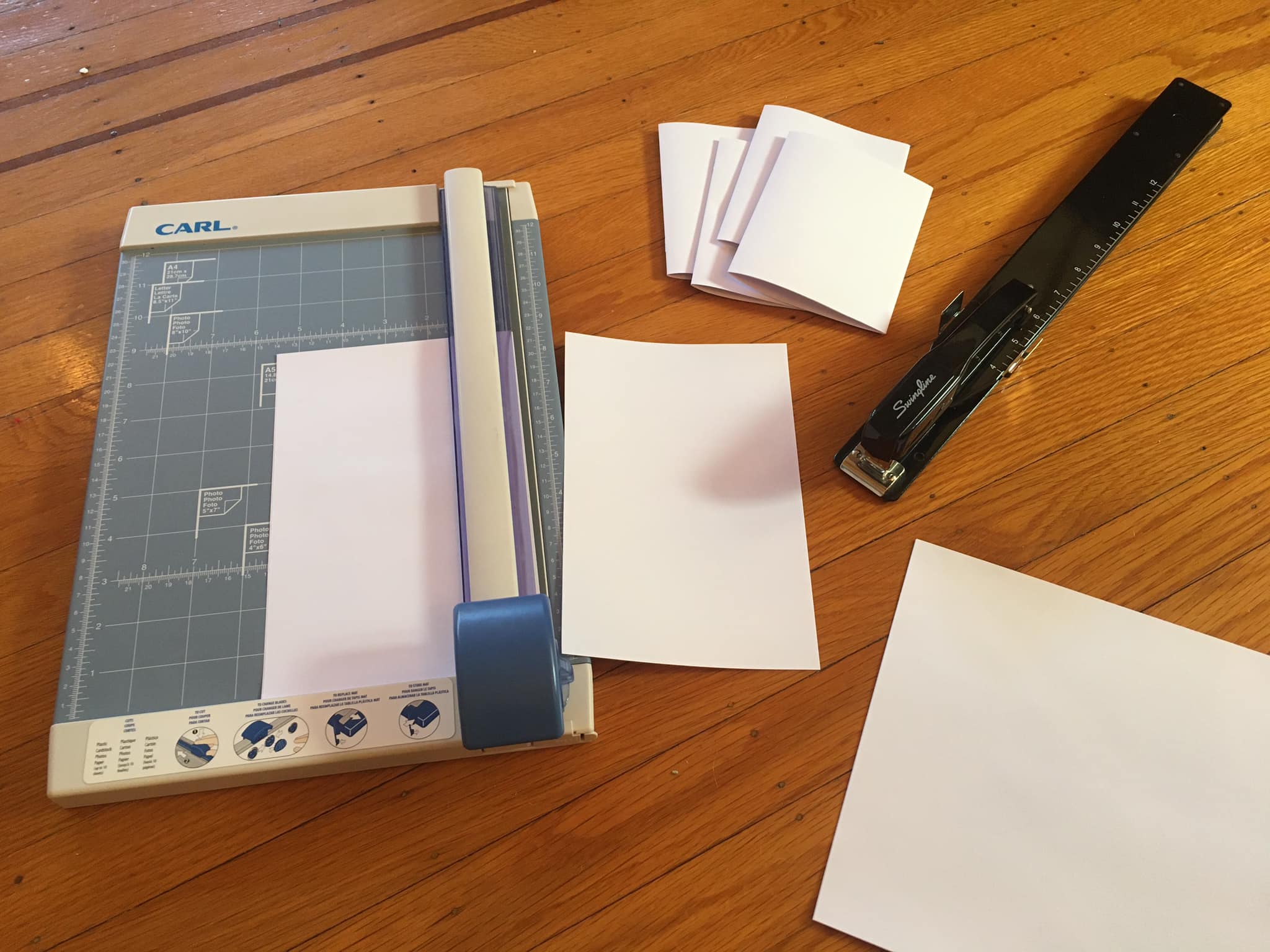 I cut two sheets of paper in half, stack them and fold them in half, put two staples in the spine, and she’s got a place to stick her wonderfully odd brain. I usually make batches of 5-10 at a time.