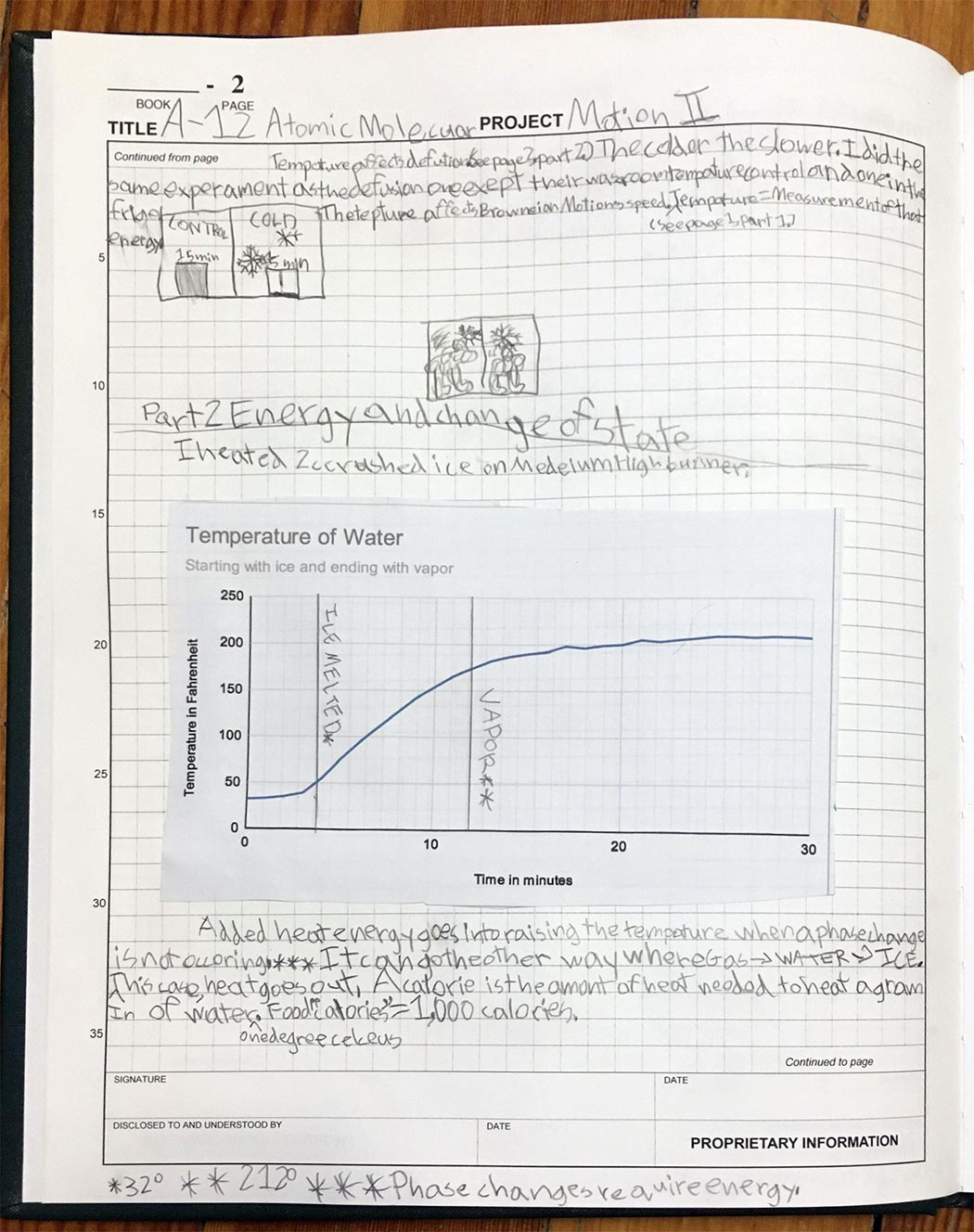 The meatier writing she's doing is in a lab notebook, documenting her experiments.