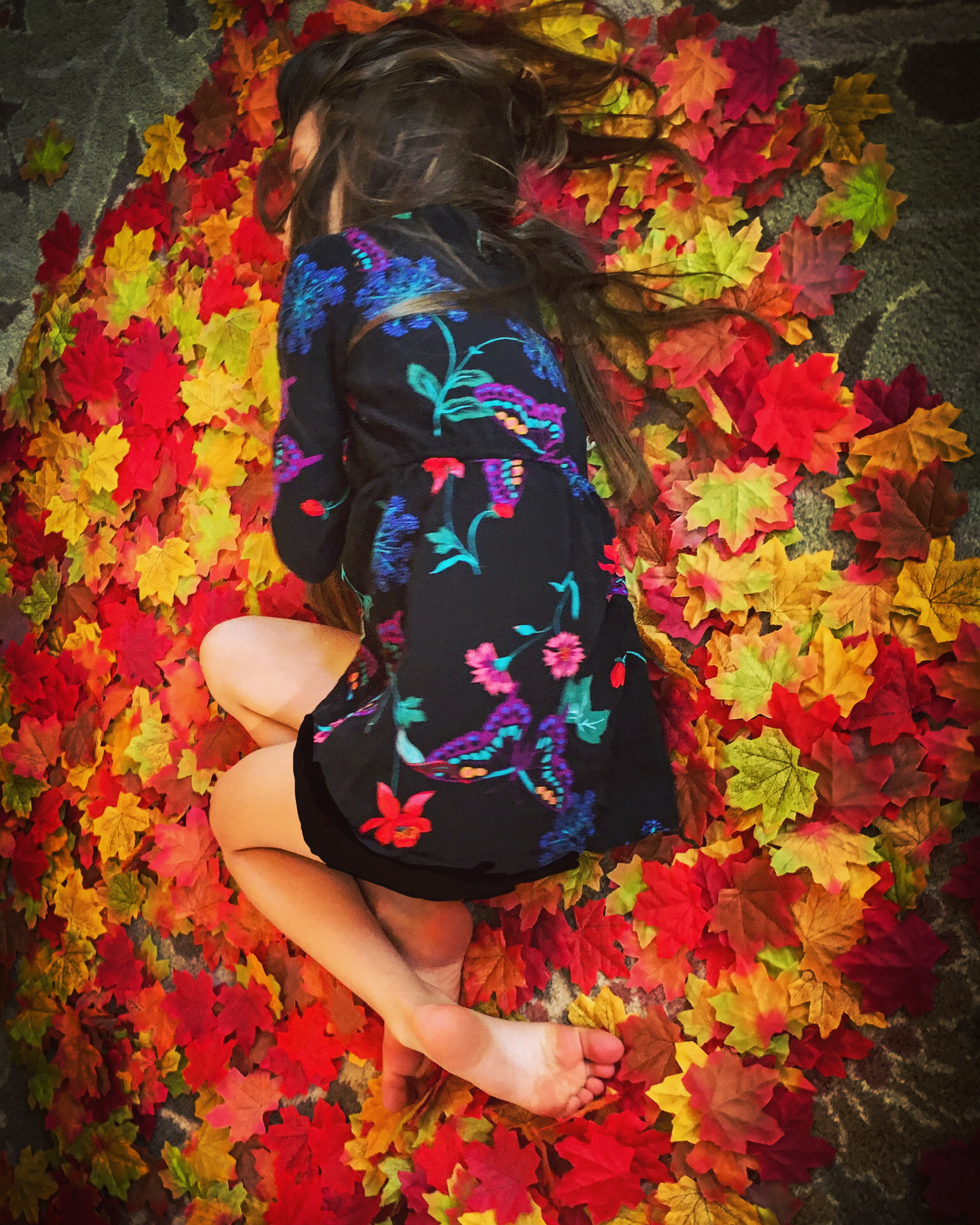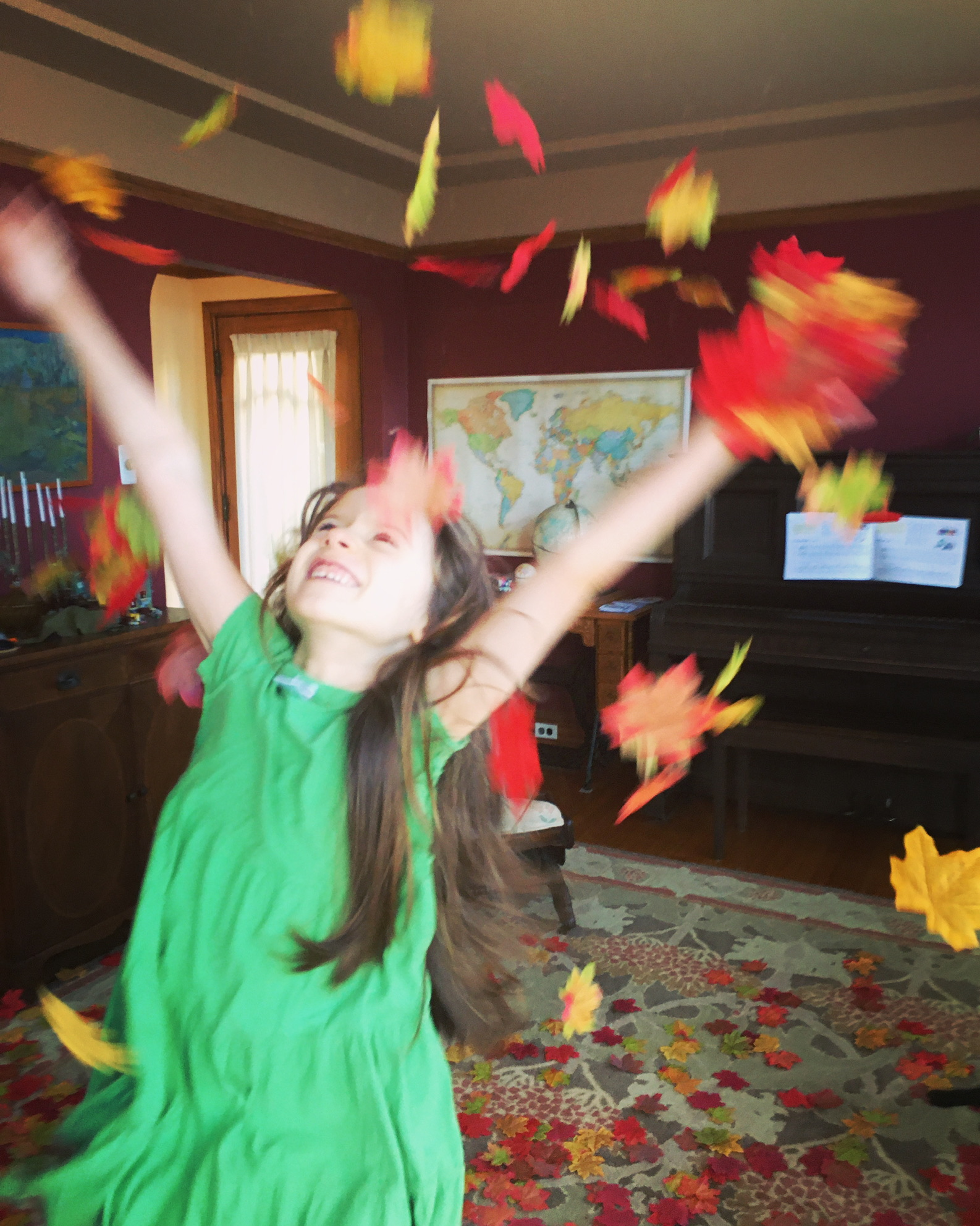 We don't really have seasons here in San Francisco, where we're nestled under a foggy blanket between the Pacific Ocean and San Francisco Bay. Most of the trees and plants here in the city do their thing year-round, and the few deciduous trees here go straight from green to brown. I wanted my kid to get to play in fall leaves! We bring them out every year on the first day of fall, and they stay there until the day after Thanksgiving, when we put them away to make room for the Christmas decorations.