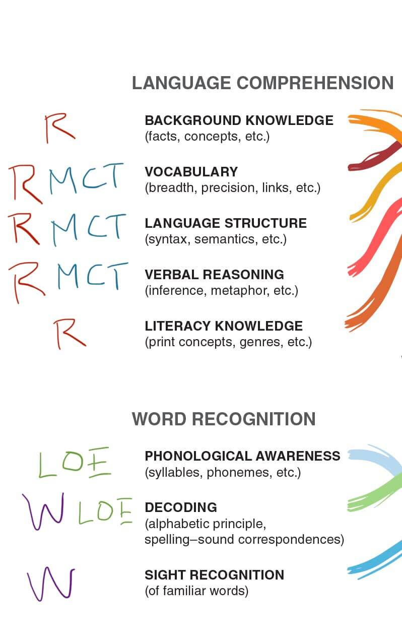 Building reading skills works best when all of these skills are being developed. Any single thread being underdeveloped can hamper the ability to construct full meaning.