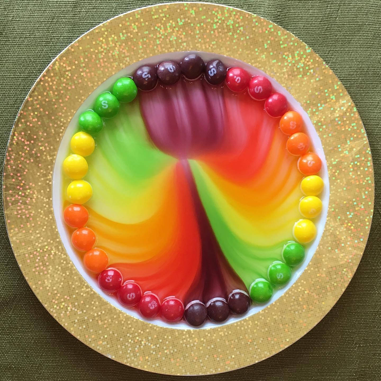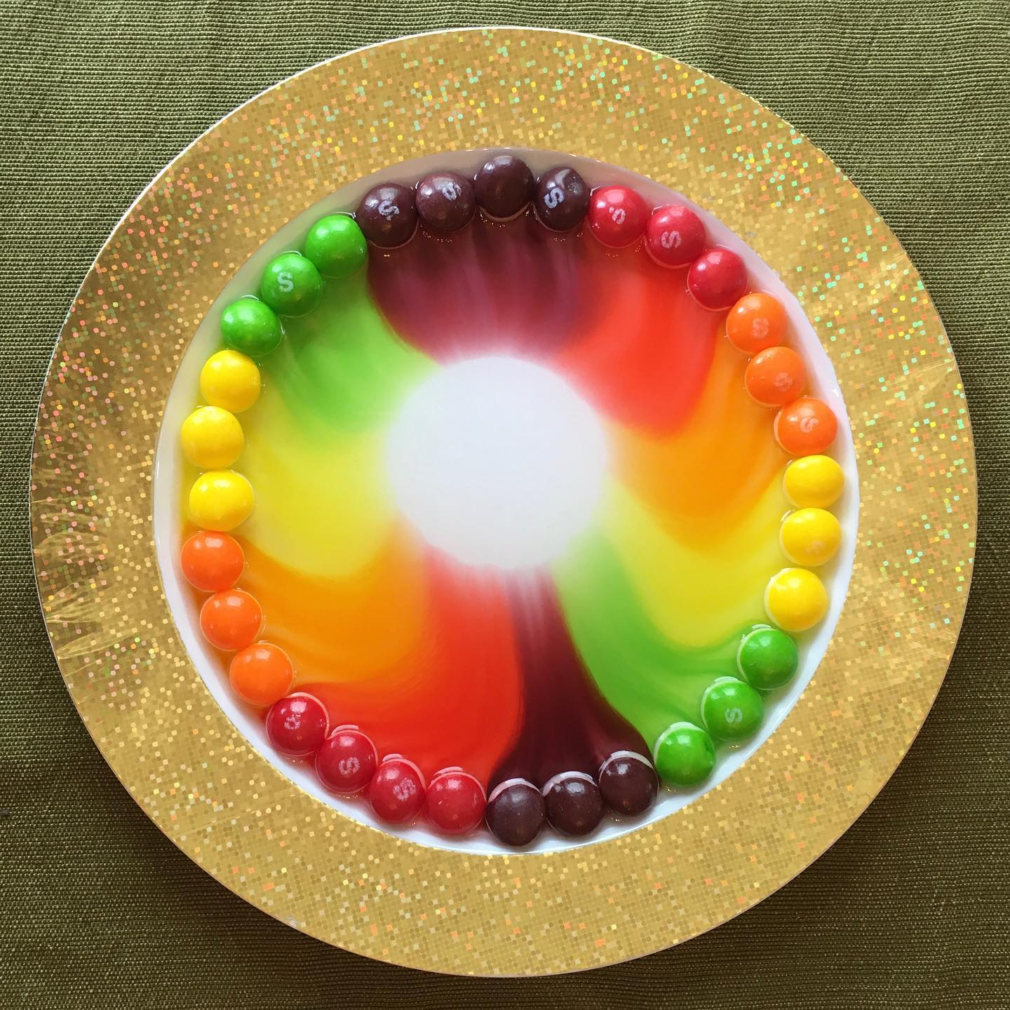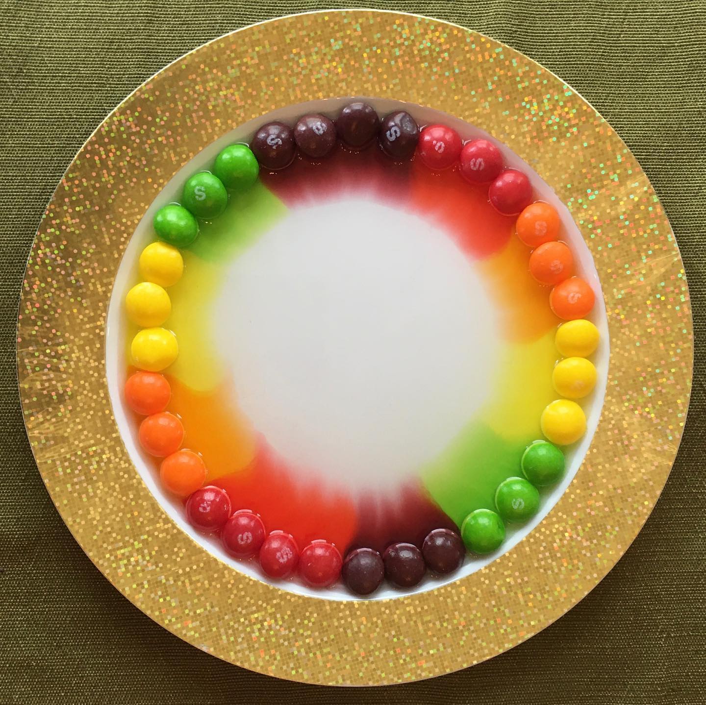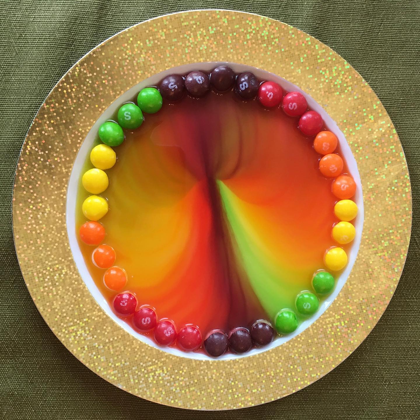 We wrapped up a few days of learning about Brownian motion (the wiggly nature of atoms & molecules), diffusion, and concentration gradients with this Skittles + plate + warm water activity.