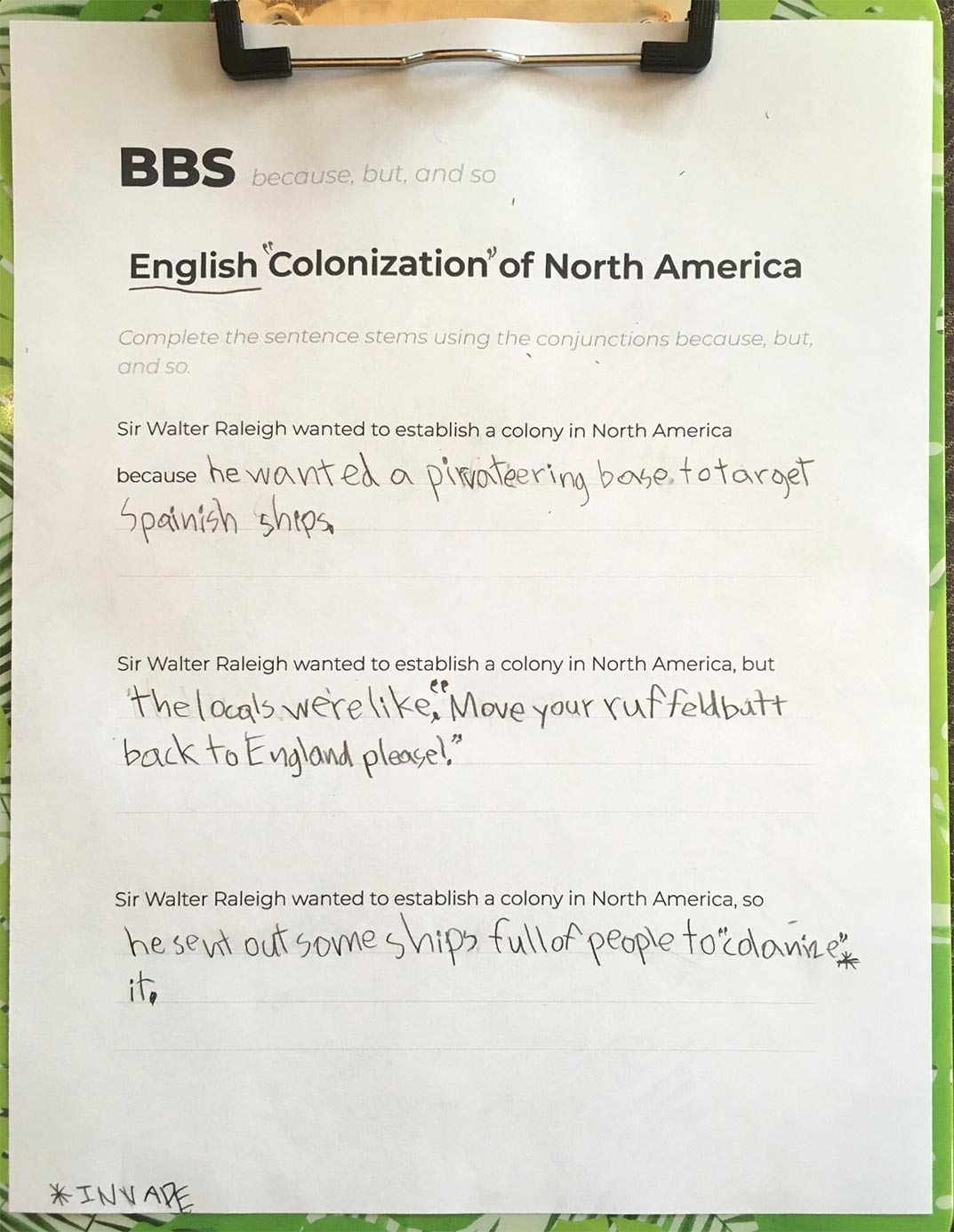 English Colonization of North America - Because, But, So activity (Google Docs)